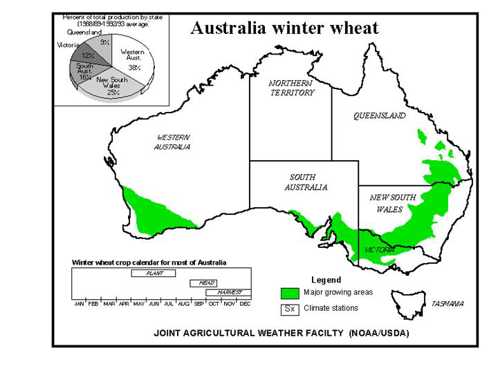 I Australien har flera veckor med torrt väder fått en del lantbrukare att börja oro sig, men Queensland och New South Wales – som tillsammans står för huvuddelen av landets veteproduktion – fick 25-50 mm regn i förra veckan enligt Australian Bureau of Meteorology. Trots nederbörden räknar analytikerna fortfarande med en mindre skörd i år på 24-26 mt eftersom lantbrukare förväntas ge avkall på vete till förmån för canola och boskap.