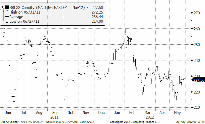 Kanadas jordbruksminister estimerar landets korn produktion till 9.2 mt jämfört med 7.76 mt året innan. Novemberkontraktet på maltkorn har inte påverkats värst mycket av torkoron på vetemarknaden och prisnivån har hållit sig runt 228 eur.