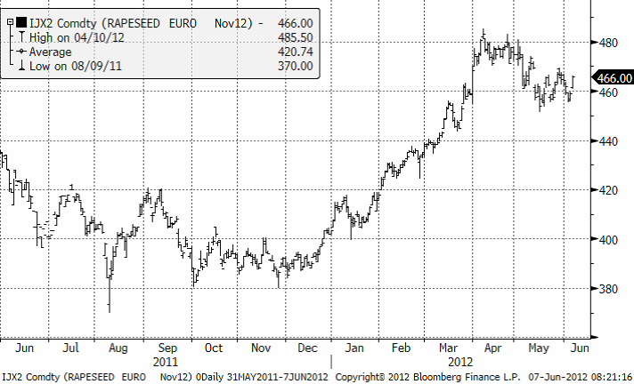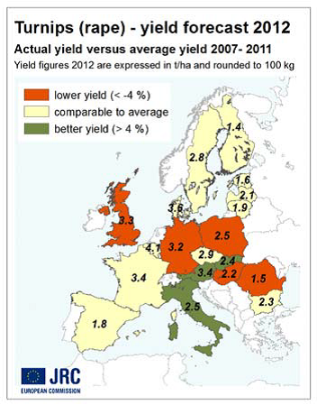 Europeiska Kommissionens MARS enhet skriver i sin senaste rapport att endast marginella förändringar förväntas i produktionen av raps i EU-27, som därmed beräknas uppgå till 19.2 mt (jämfört med 19.3 mt föregående år). Nedjusteringen i avkastningen för Tysklands sedan förra rapporten kompenseras av en ökad avkastning i Frankrike.