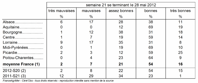 Enligt FranceAgriMer har andelen franskt höstkorn klassat som ”bra” (bonnes) eller ”utmärkt” (très bonnes) ökat till 65% från 63% veckan innan, baserat på förhållanden i sju regioner som representerar 56 procent av landets produktion.