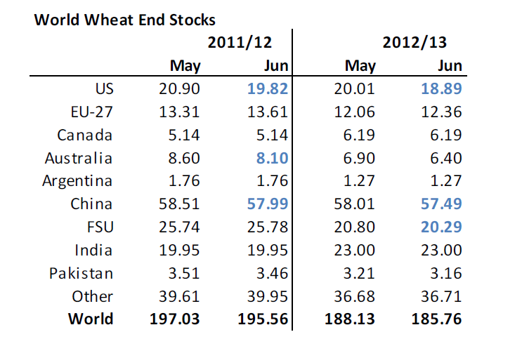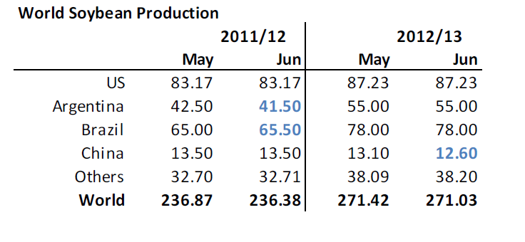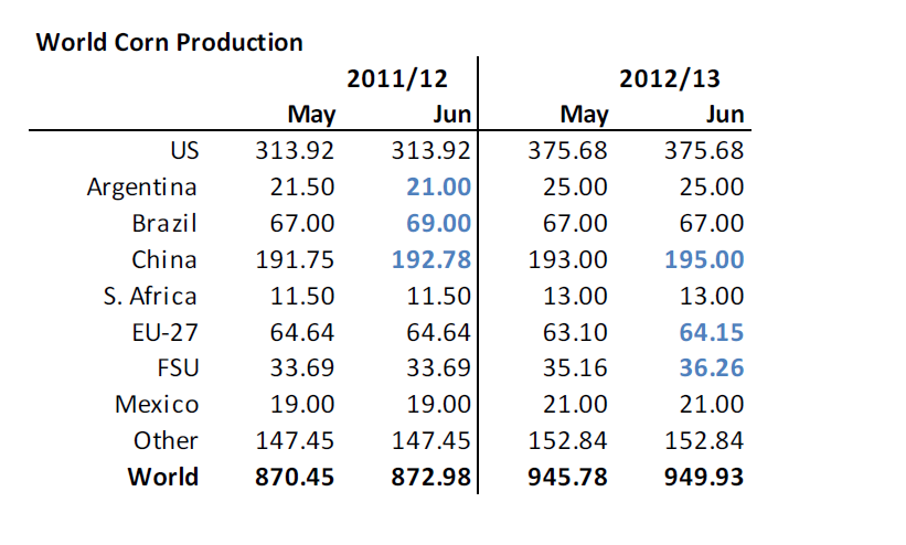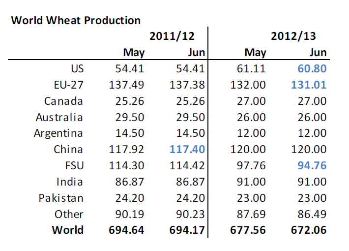 I WASDE-rapporten justerades produktionen ner med 5 mt för 2012/13.