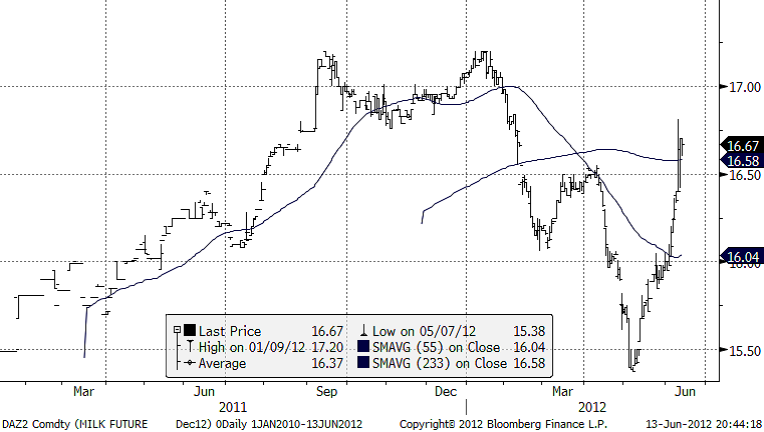 Mjölkpriset har fortsatt att rekylera uppåt för decemberleverans. 16 cent passerades snabbt, liksom 16.50. Det är en lite väl snabb omvärdering och den euforiska uppgången borde vända till motsatsen inom kort.