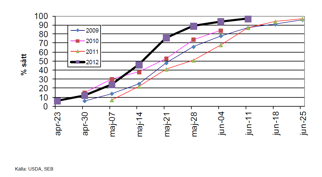 Sådden i USA var klar för en månad sedan. USDA har slutat publicera siffror på sådden.