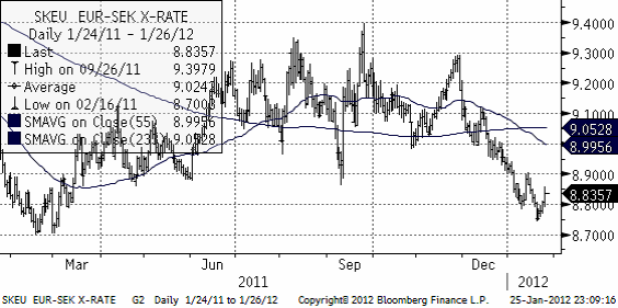 EURSEK – försöker korrigera nedgången