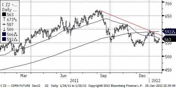 Det gick ett rykte under tisdagen den 24 januari att Argentina skulle införa ett exportstopp på majs, men detta dementerades snabbt av jordbruksministeriet, men prisuppgången stannade ändå kvar. FAO estimerar skörden av majs i Argentina till 21.4 mt, där USDA senast estimerade 26 mt. Privata firmor ligger ännu lägre, på 17-18 mt. Orsaken är som bekant, torkan som varit och som permanent skadat majsskörden. Sojan verkar kunna repa sig, men alltså inte majsen.