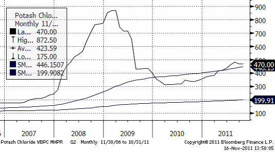 Priset på kalium ligger kvar på samma nivå som för ett par veckor sedan.