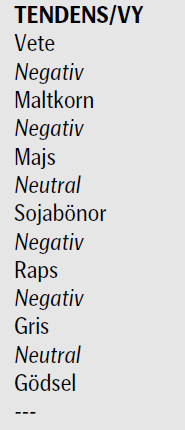 Terminspriset på Matif-vete (mars) ligger på 178.5 euro. Den rekyl vi haft upp till 180-euro-nivån är ett säljtillfälle. Det är vanligt att man ser den här typen av rekyler upp mot utbrottsnivån och oftast är det den andra chansen för dem som missade att sälja vid utbrottet. Allt tyder på att vetepriset ska ner.