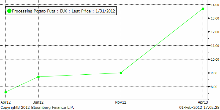 Priset på industripotatis ligger kvar på samma nivå som förra veckan för skörd 2012.