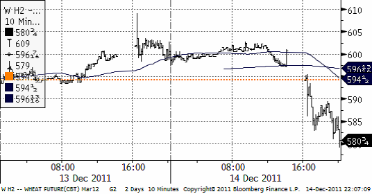 Fredagens WASDE rapport bjöd inte på några större överraskningar då marknaden förväntade sig en höjning av estimaten för produktion samt utgående lager. Några dagar innan hade dessutom FAO kommit med sin decemberrapport där man justerade upp den globala vete produktionen till rekordhöga 694.8 mt, vilket är en ökning med 6.5% jämfört med 2010 och 10 mt mer än den tidigare högsta nivån från 2009.