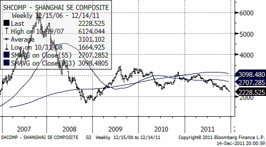 Den ledande kinesiska websidan för fastighetsbranschen sade i måndags att antalet fastighetsaffärer har fallit mer än 50% i 13 av de 35 största städerna och sjunkit i 27 av dem. Kinas ekonomi bromsar in och Shanghaibörsens aktieindex noterade ett kursfall i onsdags till den lägsta nivån på mer än 2 år.