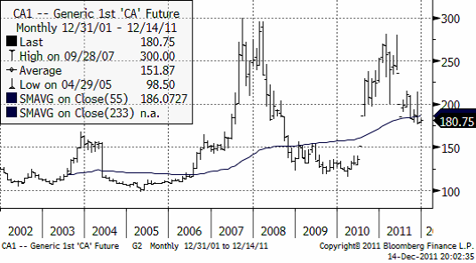 Konjunkturoron och med den oron för svagare efterfrågan på mat tynger marknaderna just nu. Precis som väntat åstadkom EU-ledarna ingenting, vilket gick upp för marknaden på måndagen när stora kursfall noterades på råvaru-, kapital- och kreditmarknader i hela världen. Det hela sjönk in ordentligt på onsdagen, när panikförsäljning startade i guldmarknaden och sedan spred sig till oljemarknaden och slutligen till hela råvarumarknaden. OPEC kom under onsdagens möte i Wien fram till att öka produktionen av olja (höja produktionstaket). Det hjälpte inte upp situationen på marknaden.