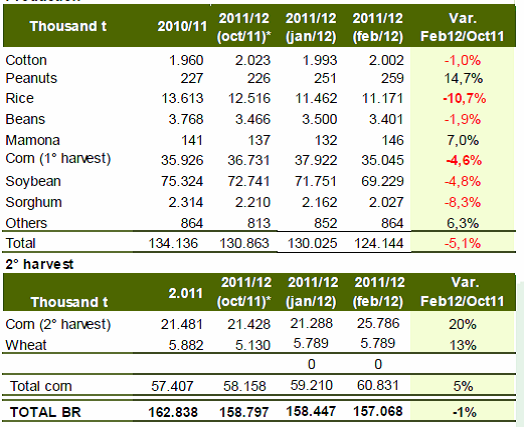 Brasilien är nu i full fart med Safrinha, den andra skörden, som enligt Conabs senaste prognos väntas bli 25.8 mt istället för 21.3 mt, som man trodde i januariprognosen. Det kompenserar mer än väl bortfallet av den första skörden, som skadades av torka.