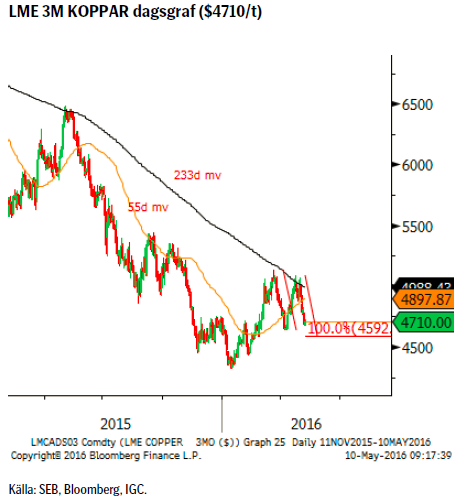 - Koppar har åter stötts ned från sitt 233d mv och fortsatt nedgång förväntas.