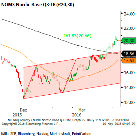 - Priset har nu nått ett sekundärt prismål, €20,66.