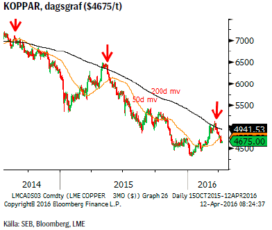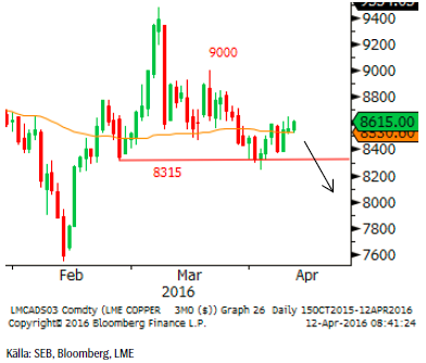 - Koppar har sedan förra veckan fallit under stödet vid $4720/t så mer nedåtpress förväntas,