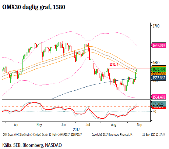 - OMX30 – testar nu motståndet vid 1583/4.