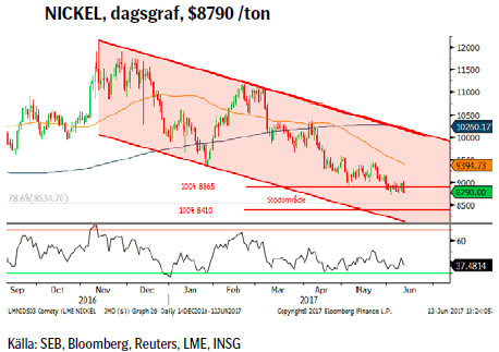 – Säsongsmässigt faller kinesisk nickelimport under andra halvåret (monsunregnen gör att dagbrottsbrytning tar en paus)