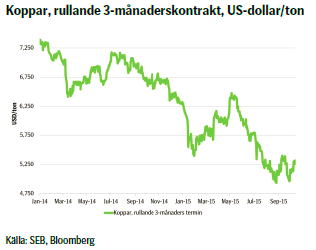 Av rutin ser man oftast på USA och Kina när det gäller att uppskatta efterfrågan på råvaror, men Europas totala ekonomi är nästan exakt lika stor, mätt i total (nominell) BNP som USA:s. I det senare landet avstår man tydligen från att höja räntan av rädsla för att störa en skör tillväxt, medan man med ljus och lykta letar efter den i Europa. Man skall dock inte bli för negativ och ett rally som det vi bevittnade under förra veckan säger inte alltför mycket om den längre utvecklingen, men det är ibland viktigt att lyfta blicken ytterligare. Tursamt nog fokuserar vi här på just råvaror och om en typ av dessa, exempelvis sådana som bygger upp ett samhälle – järnmalm, cement – drabbas av lägre efterfrågan, så ökar den för andra – exempelvis aluminium, palladium och platina – i takt med att samhället utvecklas. Efter Kina kommer så andra länder följa som skall göra samma resa. En sak är i alla fall säker – för oss som är intresserade av råvaror och placeringar kommer de intressanta tillfällena bara bli fler!