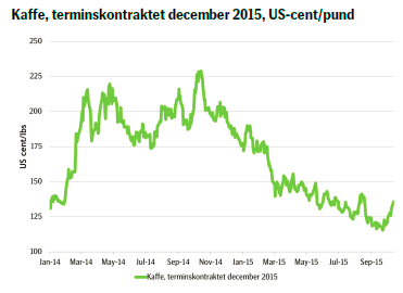 - Kaffepriset har påverkats kraftigt av den allmänna uppgången i råvaror senaste tiden