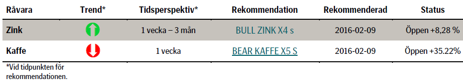 - Kaffe ser fortsatt svagt ut (vi behåller förra veckans säljrekommendation).