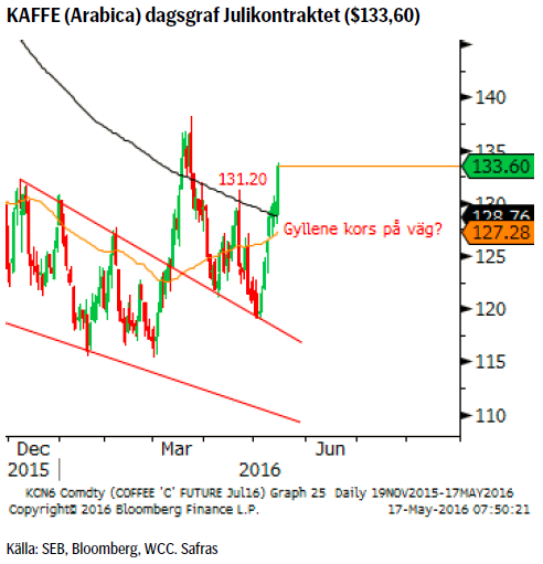 - Kaffe har brutit högre, framför allt pga. täckandet av korta terminspositioner.