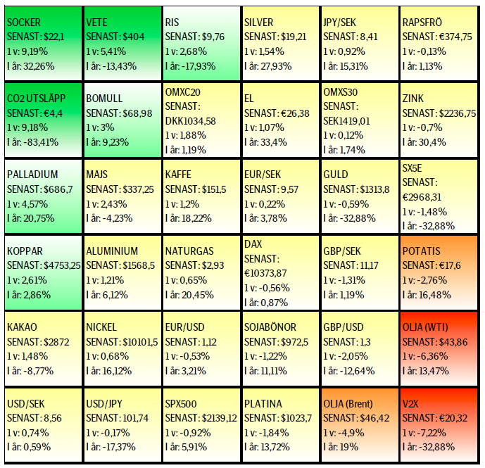 UTVECKLING SENASTE VECKAN SAMT SEDAN ÅRETS BÖRJAN