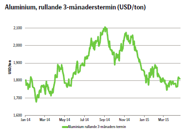 - Basmetaller spretar något, dock med positiv prisutveckling för aluminium och zink. Fundamentala faktorer talar dock för en nedgång på kort sikt i aluminiumpriset och sannolikt en fortsatt uppgång i zinkpriset.