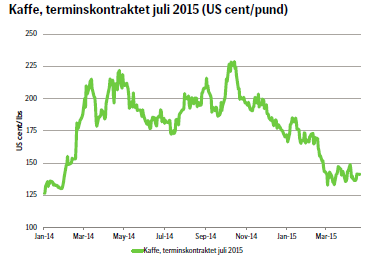 Mönstret med kaffepriset och realen har dock varit mindre tydligt under mars och även nu i april; delvis på grund av rapporterna om torka och sedan regn från viktiga odlingsområden. Senaste dagarna har vi dock som sagt sett realen stärkas och följaktligen kaffepriset gå upp. Exporten av kaffebönor från Brasilien har också minskat för första gången på femton månader då man har närmat sig slutet på skördesäsongen. Dessförinnan exporterade man mer kaffe i mars än vad man gjort sedan år 1990.