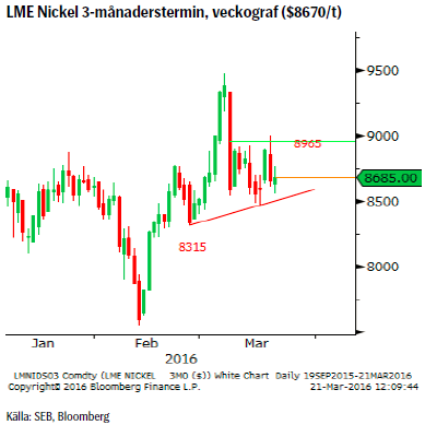 - BEAR NICKEL X4 S vid ett brott av $8315/t.