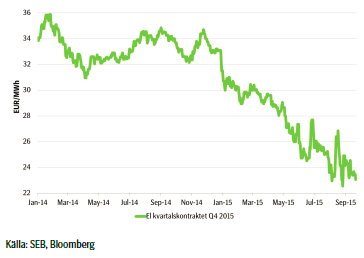 - Fundamentala faktorer såsom pris på kol och utsläppsrätter lägre