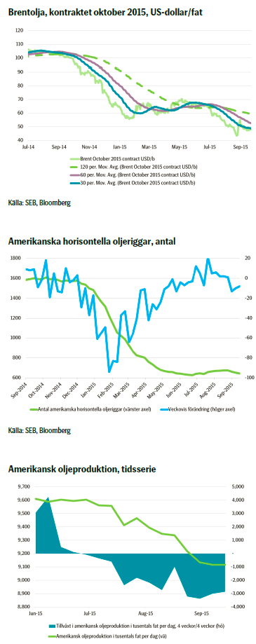Senaste tiden har det också kommit rapporter om att investeringar hos producenterna både har konstaterats och spås bli lägre framöver på grund av det låga oljepriset. Detta till trots kan priset längre ut på kurvan, det vill säga där producenterna väljer att hedgea sig, fortfarande tryckas ned då de säljer kontrakt på det tidsavståndet, medan konsumenterna köper kontrakt som ligger närmare i tiden. Den som tycker att det är en komplex marknad behöver inte vara orolig, för det tycker nog alla inblandade parter…