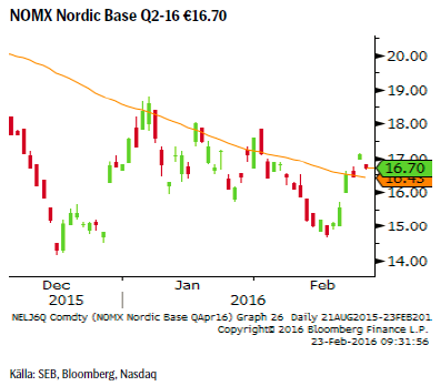 Efter den kraftiga nedgången i början av februari så har marknaden de senaste tio handelsdagarna tagit tillbaka en del av prisfallet. Vi ser dock uppgången som temporär och förväntar oss snart att priserna fortsätter den underliggande nedgången mot nya bottnar.