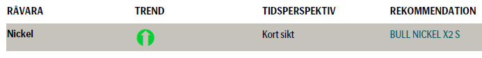 - Indonesiens översyn av innevarande exportbegränsningar för nickelmalm (för att tvinga fram investeringar i smältverk) kan leda till ett ökat utbud om man skulle bestämma sig för att lätta på restriktionerna (vilket vi finner troligt).