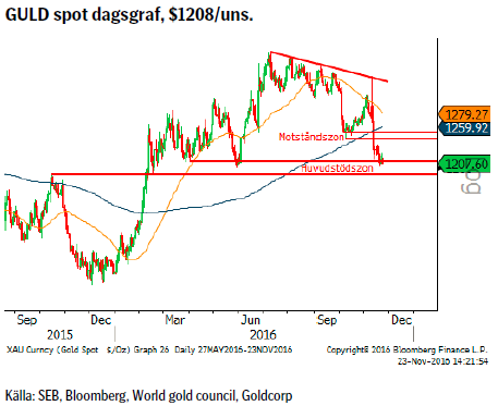 - Guld – nedgången fortsätter! Viktigt stöd i fokus.