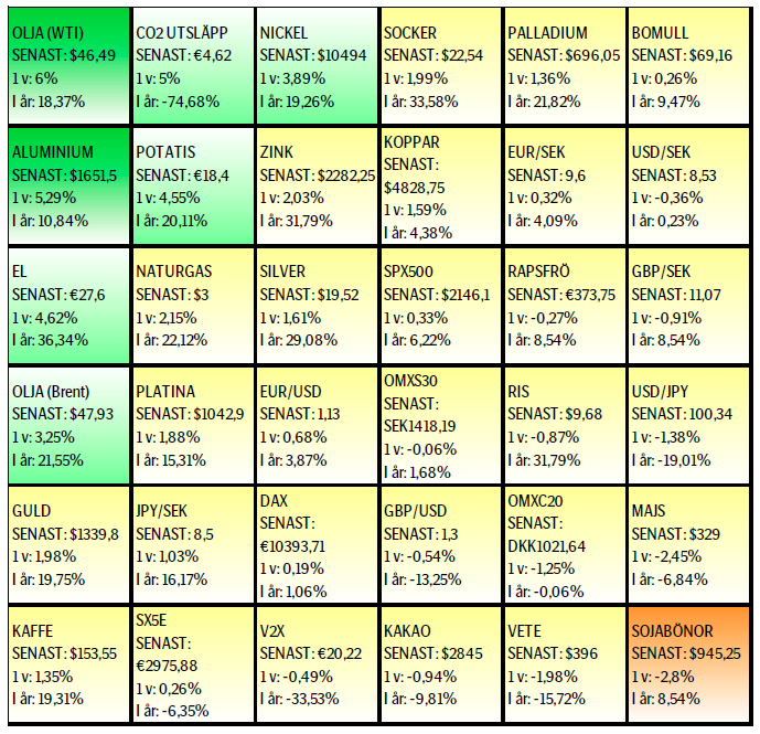 UTVECKLING SENASTE VECKAN SAMT SEDAN ÅRETS BÖRJAN