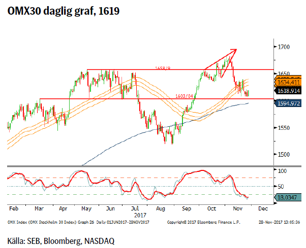 - OMX30 – ökad risk för fortsatt nedgång.