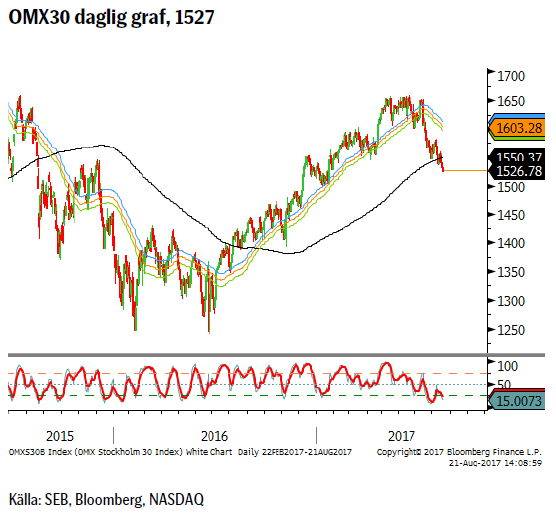 – Tekniskt så har vi brutit under den stigande 55d mv kanalen som nu också är i fallande.