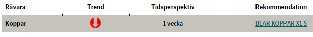 Överlag ser vi ett på kortare sikt svårbedömt landskap vad gäller råvaror. Den position som vi fortsatt har öppen är en bear-position i koppar där vi ser att risken kortsiktigt är på nedsidan.