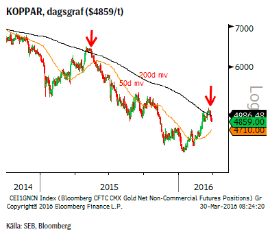 - Koppar ser allt svagare ut och vi ser en klar risk för ytterligare nedgång i närtid.