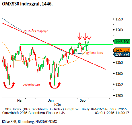Något oväntat, i alla fall för undertecknad, lyckades OPEC förra veckan komma fram till ett frö till en produktionsöverenskommelse (begränsning eller tak?). Hursomhelst svarade marknaden positivt på detta men det återstår mycket stötande och blötande innan vi har en överenskommelse undertecknad. Riskaptiten har varit fortsatt i stigande och förra veckans aktiehandel avslutades i dur. Aptiten på högräntepapper, en bra indikator på riskaptit, har fortsatt att gå starkt. För innevarande vecka så blir fredagens jobbstatistik från USA huvudnumret.
