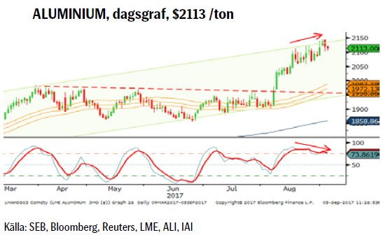 + Tekniskt befinner sig aluminiumet i en positiv trend.