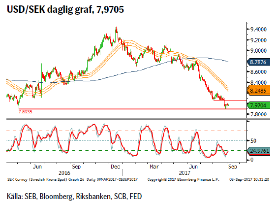 - USD/SEK – dålig lyftkraft från 7,8935 stödet.