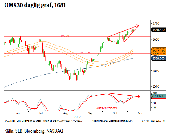 – Tekniskt så har vi både en stigande kilformation, ett vanligt ändande mönster samt en fortsatt negativ divergens.