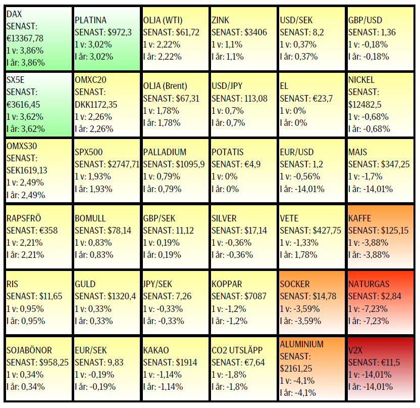 UTVECKLING SENASTE VECKAN SAMT SEDAN ÅRETS BÖRJAN