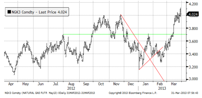 Amerikansk naturgas har lagt sig över 4 dollar. Lagernivåerna är lägre än tidigare år vid samma tid.