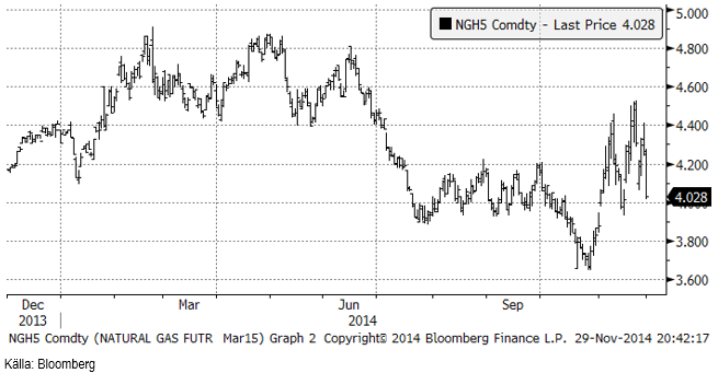 Naturgaspriset föll kraftigt i fredags i samband med det stora prisfallet på råolja.
