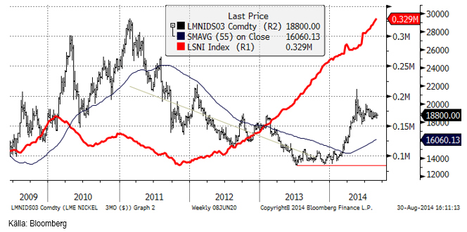 Den här nyheten är naturligtvis negativ för nickelpriset. Däremot blir det knappast billigt att exportera, men att möjligheten finns gör att sannolikheten för stora prisuppgångar i nickel minskar. Om priset går upp kraftigt pga materialbrist, kommer det att gå att få material från Indonesien. Marknaden tyckte uppenbarligen inte att nyheten skulle förändra utbuds- och efterfrågebalansen i nuvarande läge och priset förändrade sig inte mycket av den här anledningen på fredagen.