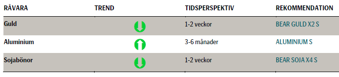 I råvarumarknaden har fokus senaste veckan fortsatt varit på oljan. Volatiliteten är hög och den senaste tidens uppgång har procentuellt sett varit mycket stor, vilket var oväntat och – vilket skall sägas – på tvärs med vad som hade förutspåtts. Om oljan fortsätter ytterligare uppåt kan aktiviteten öka hos producenterna som naturligtvis tacksamt tar emot ett högre pris som gör oljeutvinnande aktiviteter lönsamma. USA är också i fokus och man följer noga utvecklingen av både lagerbyggnad och hur många oljeriggar som är aktiva. Eftersom många faktorer påverkar är också sentimentet blandat där en del investerare har positionerat sig för ett högre oljepris och andra för ett lägre. Ett som är säkert är att den intresserade och aktiva investeraren hittar möjligheter i marknaden!