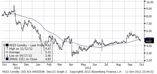 Vi har en långsiktigt positiv vy på elpriset baserat på en normalisering av marknaden för kol – drivet dels av begränsad produktionstillväxt pga det för låga priset och för att efterfrågan tar fart på grund av en konjunkturuppgång. Elpriset har den senaste tiden gått upp kraftigt på Nasdaq, men de faktorer vi baserar vår prognos på, har gått ner i pris.