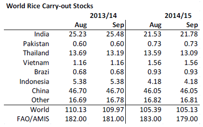 Utgående lager sänktes lika mycket. Både USDA och FAO sänker utgående lager lika mycket som produktionen minskar.